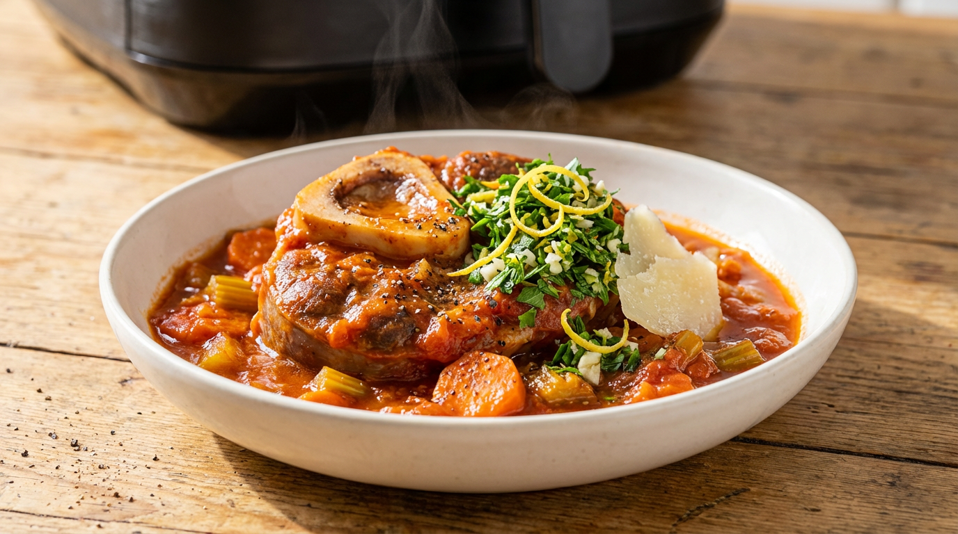 Risotto handler om stivelse fra arborio-ris og gradvis bouillon. I airfryer simrer du i lukket ildfast fad som ved one pot orzo: du åbner et par gange for at røre, så risene ikke brænder fast i kanterne.