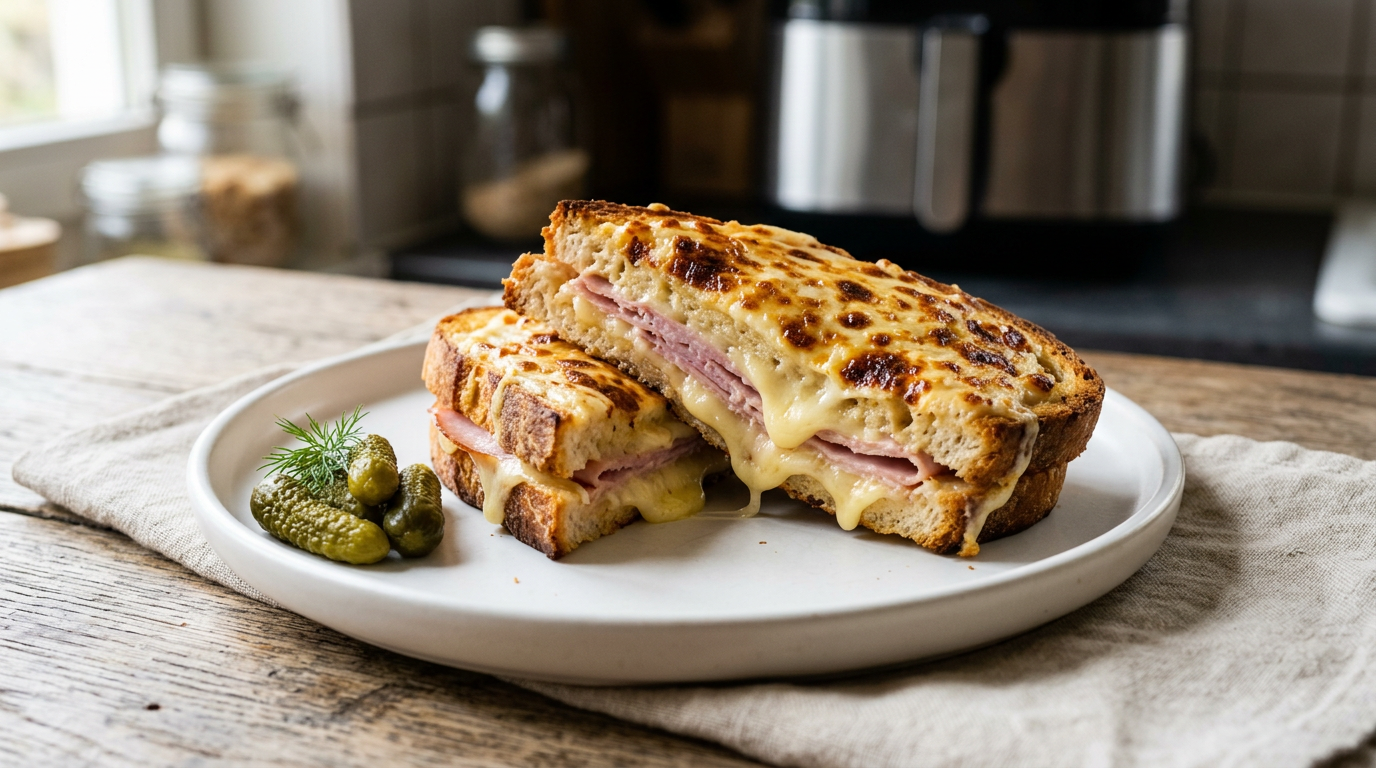 Vafler i airfryer kræver en ovnfast silikone-vaffelform der kan stå stabilt i kurven. Luften bager dejen ligesom ovn, men hurtigere — du får sprød yderside og luftig midte hvis du ikke åbner låget for ofte.